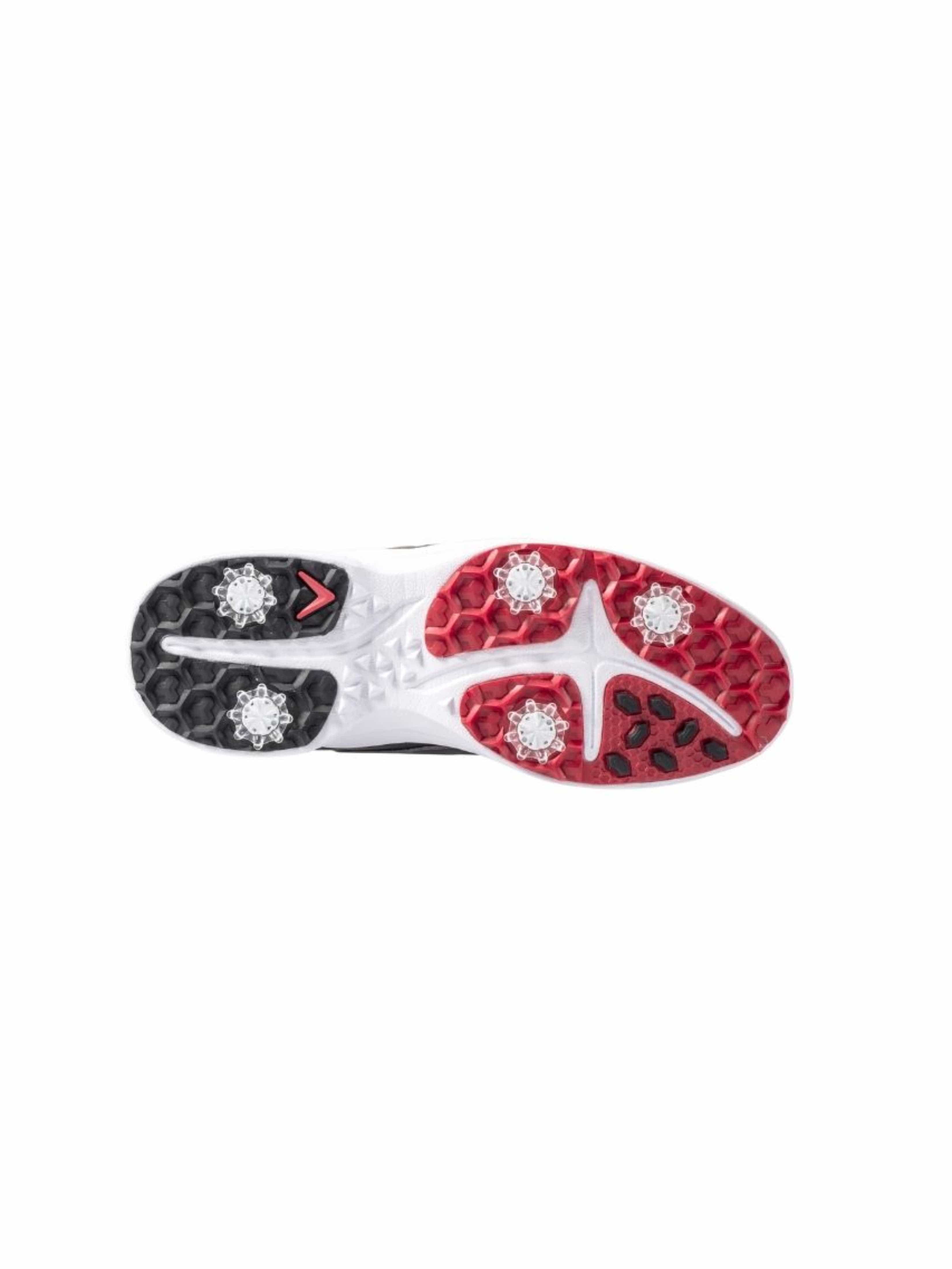 The Callaway men’s Solana TRX v2 offers the ideal combination of lightweight comfort and technical performance. Fast Twist 3.0 removable cleats help you get lower to the ground to improve your power and swing stability. Our Opti-Dri™ waterproof microfiber leather creates a barrier against inclement weather, while the Opti-Vent™ mesh liner manages heat by generating a breathable inside. The Forged DX™ midsole works with your foot's arch to create a natural walk and comfortable walk.