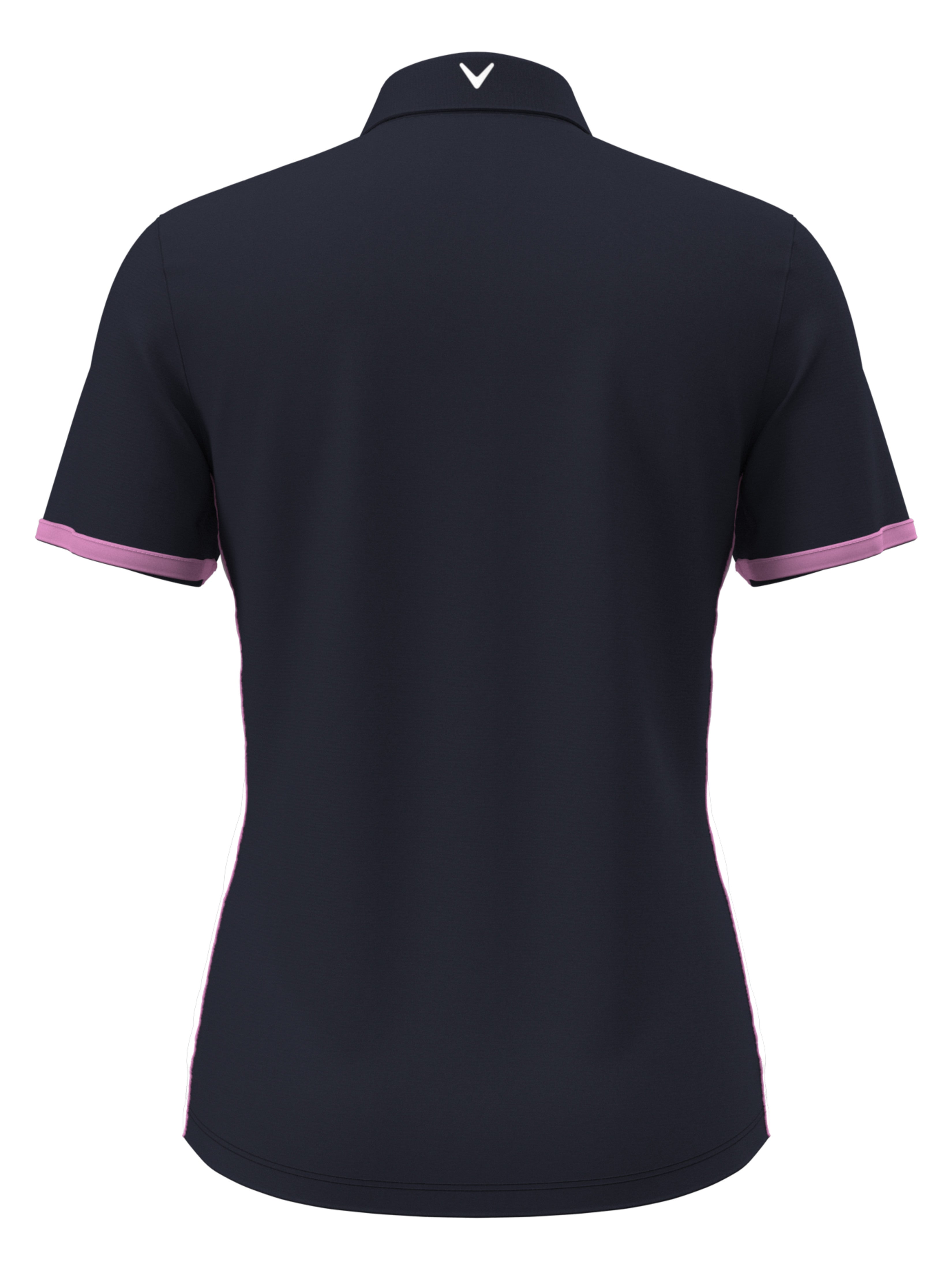 Bold color blocking down the sides, brings a modern update to this classic women’s golf shirt from Callaway. A smart style that transitions effortlessly from the course to a casual lunch date with friends, this ladies’ golf polo will quickly become a wardrobe staple. The women’s top offers sun protection technology to help block out harmful UV rays, and it wicks away moisture to help keep you comfortable and dry as you line up each of your shots. The short sleeve athletic shirt is made from a soft and naturally stretchy interlock knit for impressive comfort.